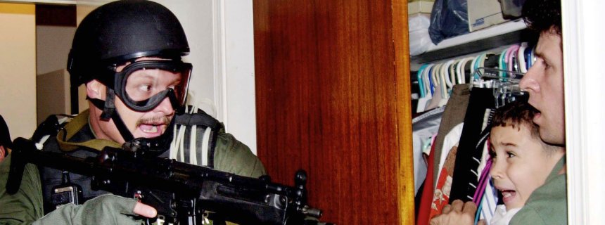 File photo of an armed U.S. federal agent seizing Cuban shipwreck survivor Elian Gonzalez from the home of his Miami relatives
