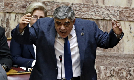 Nikos Michaloliakos speaking at the Greek parlioament on Wednesday.